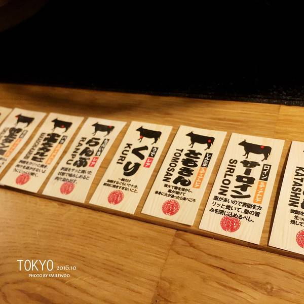 今晚快9点才吃晚饭,带着满满的收获到赤坂吃烤肉~!赤坂的美食街真的让人挪不动脚步······各色美食啊,小胖和大胖选择了和牛~肉兵卫是日本三大和牛之一,不算便宜,但是比起怀石料理好多了······每块肉都会标记位置。