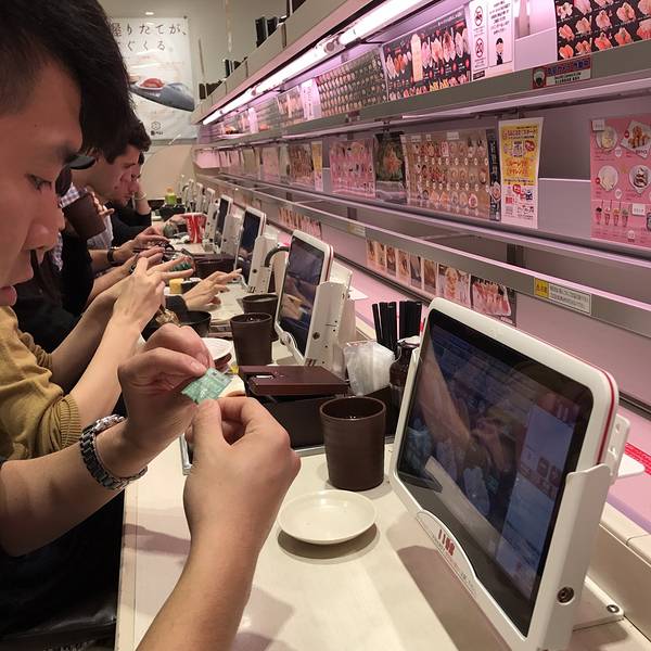 今天的晚餐我没有特别的安排,就拿起大众点评看看周围有什么吃的。搜到了一家叫“鱼米寿司”的餐厅,看到人均才50觉得不可思议,要知道在日本吃饭,几乎每顿没有下过200的啊~抱着试试看的态度,找到了这家鱼米寿司,在涩谷的道玄坂里面。先看看再这里面排队的架势,日本人,中国人,欧美人都有,非常受欢迎。