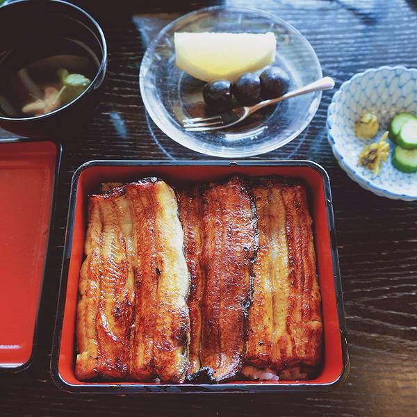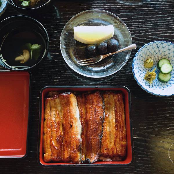 不知不觉在浅草寺晃悠了一个上午,走到雷门的时候,发现这里正在进行维修,可能是为了2020年的东京奥运会吧。那么就离开浅草寺,准备去吃午饭吧。 既然来到浅草,少不了要吃吃这里的名产鳗鱼饭。很多人是不是和po主我一样,最早知道鳗鱼饭是因为《名侦探柯南》在里那个爱吃鳗鱼饭的小胖墩儿元太?浅草这儿有很多鳗鱼料理老店,像前川、色川、初小川都是非常不错的百年老店。 我们这次要去的是已经有了两百多年历史的老店“前川”,知道这家店完全是因为池波正太郎的书。前川在以前就很受文人喜爱,如今前川在隅田川畔营业已经超过200年,现在也还骄傲地保留着店主亲掌厨房的传统。 从雷门出来,按照Google maps的导航,没走多远就顺利到达前川。离十一点的饭点还有一会儿时间,前川还没有开门,我们成了第一批客人。想象中的百年老店,门脸应当是相当气派的,其实不然。前川的门面低调不张扬,清淡的建筑色调却隐隐透露出百年老店举重若轻又不失厚重的气质。等待的时间里,慕名而来的客人越来越多,多半是日本的中老年人。如此看来,鳗鱼饭其实是一种相当成熟的食物啊! 不一会儿店家把我们迎进室内客厅。为每一批客人排好号,让我们换上拖鞋之后,由女将把我们带到三楼的用餐区域。之前一直听闻靠近隅田川一侧的位子特别抢手,今天我们第一批进来,顺利坐上靠近窗边的位置,开心!窗外这一条河就是大名鼎鼎的隅田川啦,河岸远处是晴空下的晴空塔,还有朝日啤酒总部大楼那谜一般的“啤酒泡沫”。坐在靠窗户的位子,喝着女将端上来的日式绿茶,凭窗远眺,好不惬意。既然来到前川了,当然要抓住这个机会品尝一下最优质品种的日本国产鳗鱼“坂东太郎” 做成的(鳗鱼盒饭)咯。 等待的时间,让人们对于食物的期待倍增。因为是现杀现做的关系,差不多等了半个小时,鳗鱼饭盛在漆盒中被女将恭恭敬敬地端上来。配上几样渍物、鳗肝汤与水果,这就是一顿丰盛的うな重套餐。鳗鱼有蒲烧和白烧两种做法,像前川这种蘸上酱汁烤制得方法就属于蒲烧。满怀期待地打开盛装鳗鱼饭的精致食盒,就被如此色泽诱人的鳗鱼肉给迷到了,热腾腾的鳗鱼肉里升腾起的热气把蒲烧的香气带进鼻腔,让人忍不住食指大动。 夹起一块鳗鱼肉放进嘴里,瞬间就明白了“坂东太郎”牛逼在哪儿了,这和国内吃过的蒲烧鳗鱼口感完全不在一个层次好么?首先是肉质细嫩却完全不油腻,然后是蒲烧的酱汁已经完全浸透在每一寸鳗鱼肉,入口之后几乎是用抿的就可以吃得动的鳗鱼肉,完全感觉不到鱼刺的影响。吃鳗鱼饭的除了我们,还有一堆中国小情侣,除此之外就都是日本的中老年人了。我们隔壁桌有一对老夫妻,看这个穿着打扮就知道肯定是家境很好的人家。尽管是夏天,老奶奶依旧郑重其事地穿着日式和服来吃鳗鱼饭,老爷爷也是西装革履,毫不含糊。待到鳗鱼饭上桌,双手合十,口中轻声念道“いただきます”,然后优雅地享用午餐。是啊,在日本许多生活中的小事都被慎重对待,吃饭前的一句“いただきます”,对料理人辛苦准备表示感谢,也感谢食物用己命续我命。生活的乐趣难道不正是在这种仪式感中被放大聚焦的嘛?吃完这顿鳗鱼饭,我也入乡随俗学着日本人那样,轻轻说上一句“御驰走様でした”,仿佛这样才是真正用完了一餐。 下楼结完账,服务员连连道谢把我们送到门口。大约在日本的旅途中你最能够体验到被精心服务着的感觉。一份特上的“坂东太郎”鳗鱼饭大约人民币三百多块钱,并不便宜,但是这样好的食材有机会还是强烈建议尝试一次! 离开前川,回到主路,远处就是晴空塔。按照行程的安排,这次是没时间去晴空塔好好玩玩了,就在远处来一张合影吧!