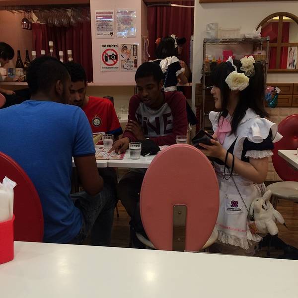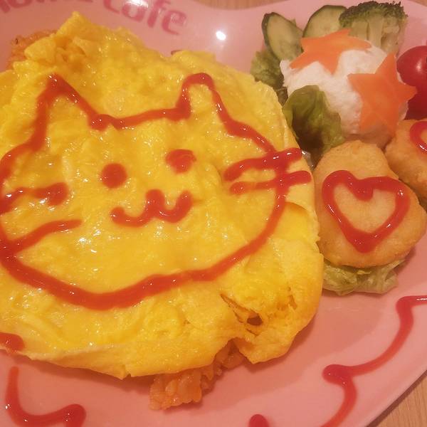 中午去了女仆咖啡厅 @home cafe 这家算是秋叶原里规模很大的女仆咖啡厅了,一共有四层,其中五楼的女仆是会说英语的,可以接待外国客人。 点了蛋包饭,女仆问我要画什么图案。想了半天,还是画个猫吧。