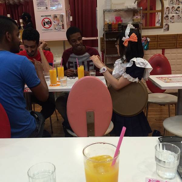 我是个超级爱看动画片的,晚上我一个人屁颠屁颠跑去了女仆咖啡店 橙汁700日元,桌子费600日元,拍照350日元
