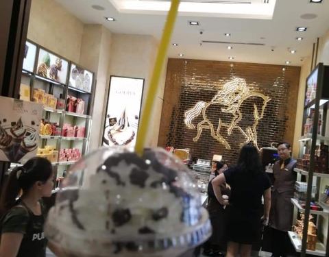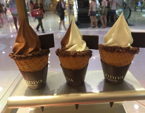 这是全球连锁店了,专门卖巧克力的,在上海也有连锁店,应该是法国的牌子。买的巧克力也是挺贵的,按照一颗一颗买的,但是冰淇淋也可以尝试一下。