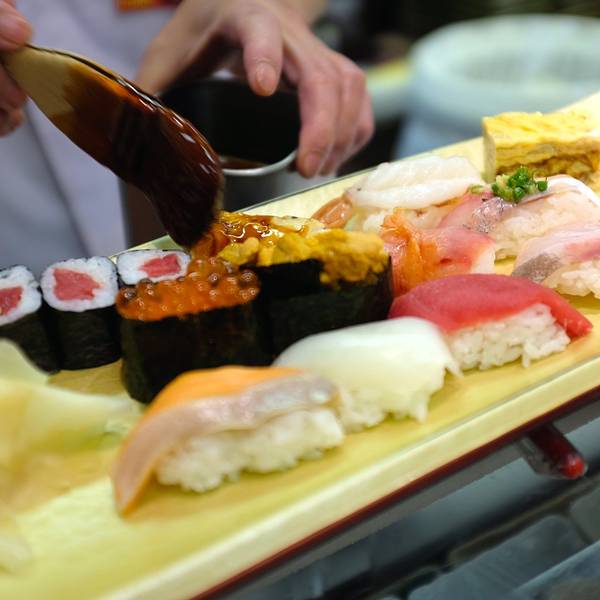 我们住的酒店其实就在筑地市场的外圈,下楼就是各种店铺,既然到了筑地市场,岂能不吃最新鲜的寿司呢。早上7点起床下楼,找了家人多的店就钻进去开吃。图省事点了份套餐,端上来还是被惊艳到了,金灿灿的海胆,娇...