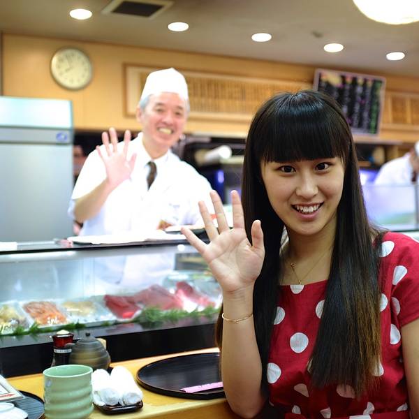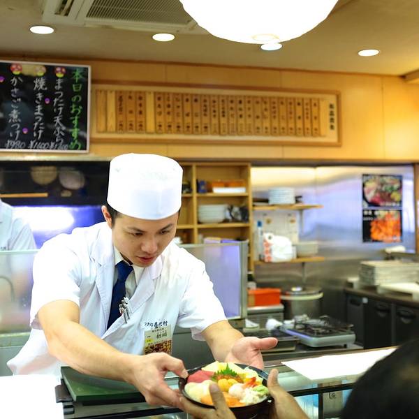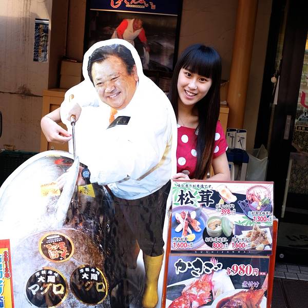嗯,最后没能拒绝筑地喜代村别馆热情的引导员,下定决心就吃这家啦~ 直到后来到了大阪发现,这貌似是特别有名的一家寿司连锁店,因为在大阪的道顿崛都能看到这张照片中的老板的身影呢~