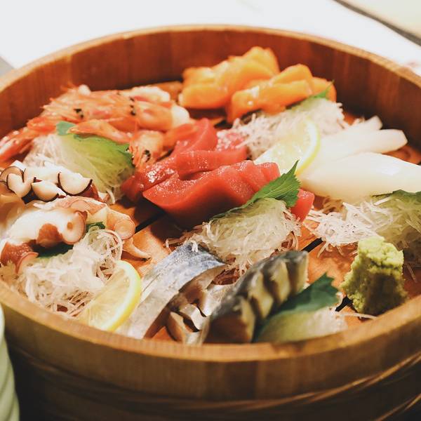 今晚的重头戏来了,喜代村餐厅就餐。他是一家连锁寿司店。听说这家已经多年投得称为“日本一”的蓝鳍吞拿鱼。但是这位门口的大叔肖像,这样看起来有点诡异啊!哈哈哈哈哈哈,对没错这么丰盛的寿司,当然不是只有我和衣刀咯,是六个小伙伴一起解决它!哦~美味的寿司拼盘!这家店面好大,有给团体用餐的地方还有给散客用餐的地方!