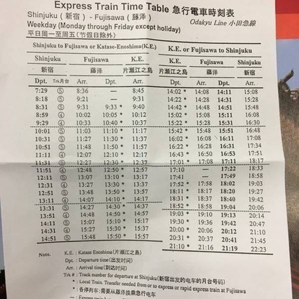 - 从新宿站可以乘坐小田急电车换江之岛电车可到达。小田急电车时刻表。换乘路线图