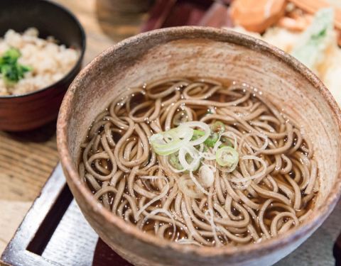 板荞麦是山形县的一道特色美食,很久以前日本劳动人民吃大锅饭的时候,经常把荞麦面盛在一个长木板箱,大家一起享食。在日语中有个说法叫做「板につく」寓意一起劳作的人工作上能早日得心应手,板荞麦的得名也由此而来。山形荞麦的特点是颜色比普通江户荞麦要偏深色些,也比江户荞麦更粗更硬,在咀嚼过程中享受荞麦的那种唇齿留香。 店坐落于距离惠比寿车站步行5分钟左右的一条小巷口,平时一到中午,门口就已经排起了长队,多的是在附近上班的白领,也有慕名而来的游客,日本人排队规规矩矩,与前面排队的人隔出一人的空间,保持刚刚好的距离。 进店后,和风气息扑面而来,连菜单都是用类似于宣纸纸张的朴素原味风,在这样清淡的环境中整个人瞬间就放松了下来。 菜单种类不多,但几乎每种都是人气王,其中经典荞麦套餐,天妇罗荞麦套餐和鸭肉荞麦套餐下单率最高,特别是鸭肉荞麦,因为日本人不喜鸭肉,能觅到的店不多,会做鸭肉荞麦面的店更是少之又少。 荞麦可以选择细面或者是粗面,温热或者是冷荞麦,蘸酱也有芝麻和普通可供选择。 初冬的日本有些冷,于是选择了热荞麦天妇罗套餐,随餐还附送小碗鸡五目焖饭。 一上桌,荞麦的清香扑鼻而来,通常掺了小麦粉的荞麦面口感会更爽滑,他们家偏深色些的细打荞麦面口感没有那么爽滑,但散发着迷人的口感相当有嚼劲。 几起几落,便嗦完,唇齿留香久久不散。 如果你点的是冷面,吃完服务员还会呈上一小壶荞麦汤,是煮完荞麦后的汤水,营养非常丰富,就这么喝已经浓郁沁香,亦可倒入蘸汁增加更丰富的口感。 天妇罗里有两只大虾,猪肉,洋芋。没有天妇罗蘸酱,只有桌上的粗盐,店家非常注重还原食材本身的味道,没有过多使用调味。 大虾炸完后外脆里嫩,虾肉紧实饱满大只,猪肉全用瘦精肉,也未经过任何调味,待食客品尝原汁原味。洋芋软糯香甜可口,真是一口都不过瘾。 附送的小碗鸡五目焖饭略有余温,日本人非常喜欢这样带些硬口感的鸡五目焖饭,我个人还是觉得热乎乎的软焖饭更合胃口 吃完没有重油腻的饱腹感,心情舒畅喜悦。