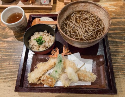 板荞麦是山形县的一道特色美食,很久以前日本劳动人民吃大锅饭的时候,经常把荞麦面盛在一个长木板箱,大家一起享食。在日语中有个说法叫做「板につく」寓意一起劳作的人工作上能早日得心应手,板荞麦的得名也由...板荞麦是山形县的一道特色美食,很久以前日本劳动人民吃大锅饭的时候,经常把荞麦面盛在一个长木板箱,大家一起享食。在日语中有个说法叫做「板につく」寓意一起劳作的人工作上能早日得心应手,板荞麦的得名也由此而来。山形荞麦的特点是颜色比普通江户荞麦要偏深色些,也比江户荞麦更粗更硬,在咀嚼过程中享受荞麦的那种唇齿留香。 店坐落于距离惠比寿车站步行5分钟左右的一条小巷口,平时一到中午,门口就已经排起了长队,多的是在附近上班的白领,也有慕名而来的游客,日本人排队规规矩矩,与前面排队的人隔出一人的空间,保持刚刚好的距离。 进店后,和风气息扑面而来,连菜单都是用类似于宣纸纸张的朴素原味风,在这样清淡的环境中整个人瞬间就放松了下来。 菜单种类不多,但几乎每种都是人气王,其中经典荞麦套餐,天妇罗荞麦套餐和鸭肉荞麦套餐下单率最高,特别是鸭肉荞麦,因为日本人不喜鸭肉,能觅到的店不多,会做鸭肉荞麦面的店更是少之又少。 荞麦可以选择细面或者是粗面,温热或者是冷荞麦,蘸酱也有芝麻和普通可供选择。 初冬的日本有些冷,于是选择了热荞麦天妇罗套餐,随餐还附送小碗鸡五目焖饭。 一上桌,荞麦的清香扑鼻而来,通常掺了小麦粉的荞麦面口感会更爽滑,他们家偏深色些的细打荞麦面口感没有那么爽滑,但散发着迷人的口感相当有嚼劲。 几起几落,便嗦完,唇齿留香久久不散。 如果你点的是冷面,吃完服务员还会呈上一小壶荞麦汤,是煮完荞麦后的汤水,营养非常丰富,就这么喝已经浓郁沁香,亦可倒入蘸汁增加更丰富的口感。 天妇罗里有两只大虾,猪肉,洋芋。没有天妇罗蘸酱,只有桌上的粗盐,店家非常注重还原食材本身的味道,没有过多使用调味。 大虾炸完后外脆里嫩,虾肉紧实饱满大只,猪肉全用瘦精肉,也未经过任何调味,待食客品尝原汁原味。洋芋软糯香甜可口,真是一口都不过瘾。 附送的小碗鸡五目焖饭略有余温,日本人非常喜欢这样带些硬口感的鸡五目焖饭,我个人还是觉得热乎乎的软焖饭更合胃口 吃完没有重油腻的饱腹感,心情舒畅喜悦。