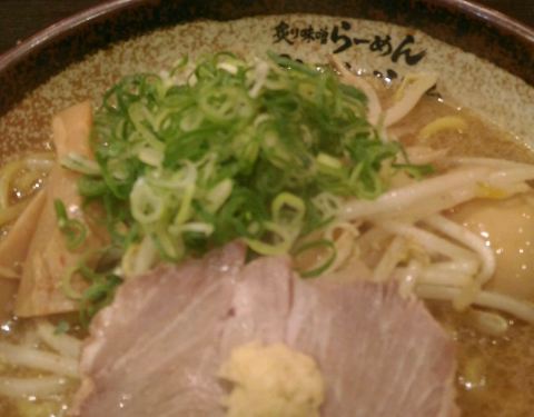 炙り味噌ラーメン。スープが香ばしくて美味い。生姜が効いてるせいか体があったまる。いつもモヤシ増しで注文してる。