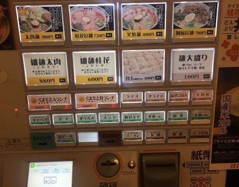 桂花拉面,猪骨汤底,美味,还有盖饭,味道也不错。他家是自助购买票的,挺有意思