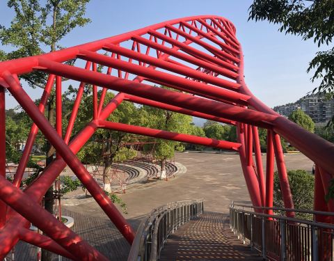 沿台阶向下一直可走到湖边,平静的湖面倒映出高大建筑闪烁变幻的多彩灯光,赏心悦目秀水广场的面积大、环境好,绿化覆盖率高。广场中心一侧壮观的红色天桥,型似巨龙,与广场的雕塑相呼应。沿台阶向下一直可走到湖边,平静的湖面倒映出高大建筑闪烁变幻的多彩灯光,赏心悦目。