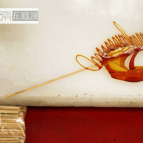 其实这两块五一斤的黄金果更像是柑橘和佛手的混种水果,口感略微苦涩,水分也不足,但却别有一份风味 但,这是一个世俗的世界,而五凤溪也不仅仅有着出世清净的一面,更有尘世人间的一面。五凤溪古镇 生活区的古镇虽不精致,但却更让人容易回想起儿时的时光,那些屋舍的模样,似乎几十年不曾有过改变。五凤... 但,这是一个世俗的世界,而五凤溪也不仅仅有着出世清净的一面,更有尘世人间的一面。五凤溪古镇 生活区的古镇虽不精致,但却更让人容易回想起儿时的时光,那些屋舍的模样,似乎几十年不曾有过改变。五凤溪古镇 街头的酱油铺贩售着手工制作的酱油,让人回忆起儿时拿着酱油瓶站在又大又高的酱油缸前打酱油时的记忆。五凤溪古镇 仲夏是蜜桃成熟的时节,街头贩卖蜜桃的小贩闲适地一边玩着手机一边等着顾客光临。五凤溪古镇 带着自家种的农家菜沿街贩卖的老人,走得累了便聚在一起,拉拉家常,等到体力回复后再接着沿街叫卖。五凤溪古镇 贩卖黄金果的老妪说,这是自家树上的果子,就这么一筐,出了五凤溪,不在这七月时节,都是吃不到的。五凤溪古镇 其实这两块五一斤的黄金果更像是柑橘和佛手的混种水果,口感略微苦涩,水分也不足,但却别有一份风味。五凤溪古镇 没有顾客光临的小店,围着围裙的服务员在街边逗弄着同样闲散的猫。五凤溪古镇 街边的糖画摊和几十年一个模样。五凤溪古镇 转上几圈后,总是只能停留在小物件上,不过也偶有运气爆棚的时候,能转到糖龙和糖凤。五凤溪古镇 等到转棍停歇,糖画师便开始现场作画,瞬间用热糖浇灌出想象中的模样。五凤溪古镇 一只糖蝴蝶,飞舞在五凤溪古镇的街头,飞舞在城市的浮躁与古镇的清静自在之间,飞舞在高楼与绿水小山之间,飞舞在童年和疲惫的成人世界之间……这便是五凤溪,仲夏时节绿意盎然的模样。五凤溪古镇五凤溪古镇 展开