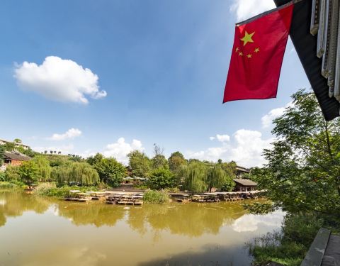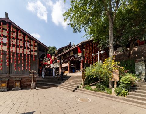 可能是我们去的时间不对,有些地方还在打造中,实在没瞧出特别吸引人的地方。人气都集中在小吃一条街上面了,这里显得比较清幽。红彤彤的灯笼...五凤溪古镇,官方名字为五凤镇,位于龙泉山脉中段的沱江之畔。
