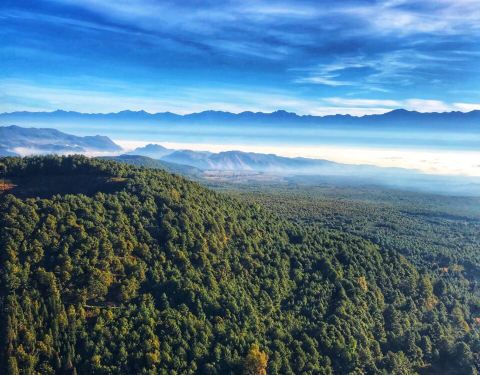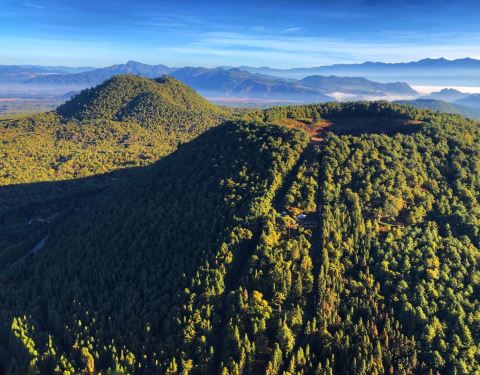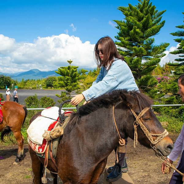 腾冲作为著名的火山之城,靠的就是这九十多座火山的存在,腾冲的火山中,最负盛名的是大空山和小空山...有诗称“十山九无头”说的就是腾冲的火山,腾冲作为著名的火山之城,靠的就是这九十多座火山的存在,腾冲的火山中,最负盛名的是大空山和小空山,是腾冲火山地质公园的主景区。大、小空山相距数百米,如同一对孪...有诗称“十山九无头”说的就是腾冲的火山,腾冲作为著名的火山之城,靠的就是这九十多座火山的存在,腾冲的火山中,最负盛名的是大空山和小空山,是腾冲火山地质公园的主景区。大、小空山相距数百米,如同一对孪生姐妹,相伴而生。检票入口处就是腾冲火山地质博物馆,馆内介绍了地质的构成和形成,不过我们去的时候正好在修缮,就没有进去参观了,直奔主景区!由于到达景区的时候已经快要中午的,所以我们就买了电瓶车票,等到了大空山脚下的时候,这里的热气球已经开始下降了,问了一下地面的工作人员热气球还飞吗?得到的回答是不飞了,风已经开始大起来了,再飞就不安全了。这让我们都有点沮丧,要知道我和小吴来这里最主要的目的就是坐一次热气球的,不过索性运气还算不错,热气球上的师傅落地以后说还可以再飞最后一趟,于是我们两个屁颠屁颠的跑了过去。只见师傅轻轻扳动挡杆,一股火焰喷涌而出,那热浪吹的我们头皮都要烫坏了,不过眨眼间我们就升到了最高的200米处,这时候视野一片开阔,远处金黄的稻田携着远山浩渺无垠。师傅介绍着脚下的风景,最高的是大空山,边上稍微矮一点的就是小空山了,两座山的山顶都是凹陷呈深坑状,师傅还指着视线目极的地方说那就是高黎贡山,另一边40公里外就是缅甸。美好的时光总是短暂的,由于风渐渐的大了起来了,出于安全考虑师傅选择下降了,所以说要坐热气球的话还是早点过来比较好,不然不是谁都像我们一样运气好赶上最后一趟热气球。下来以后就有很多当地的马夫过来推销骑马项目,本来是不想花这个钱的,受不住他们的软磨硬泡再加上没骑过对马的好奇,我们还是同意了骑马上山。当然这些马儿性格都是很温顺的,由马夫牵着经马道登上大空山,在马上的感觉还是挺好的,尤其不能紧张,越紧张马儿驮着你就越吃力,还不如放松点想象自己是套马的汉子,自如的在马背上变换姿势。没过多久就登上了大空山顶,马夫告诉我们绕着大空山顺时针一圈是桃花运,逆时针方向则是财富运,不过听到要另外收费,我们马上打消了走财富路的念头。山上有一个石碑,写着“问天”两个字,除此之外也没什么好看的了,稍微呆了一会我们就又上马准备下山了,听马夫的介绍我们现在是淡季价格也不高,旺季的时候马都不够游客体验,价格也高到五六百块上一趟山了,所以还是那句话,“物以稀为贵”,人多了自然东西会变贵起来。下到山脚以后我们就从马上下来步行了,临走之前我还拍了拍马的屁股,幸好它没和我计较,不然一蹄子过来我可承受不住。 展开