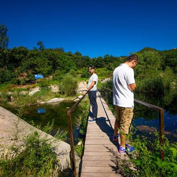 下车步行约1公里,河水流动之声渐缓,突然山回路转,眼前豁然开朗,宽阔的河面上一座小桥横架南北,桥的另一端是一栋清舍雅苑般的建筑,这就是篱苑书屋。书屋前还有两条蜿蜒的水中栈道,道路上面铺满了细碎的鹅卵石,踩上去发出咯咯吱吱的响声,似在提醒来人:已至自然清幽之所,勿将凡尘俗事带入。 展开