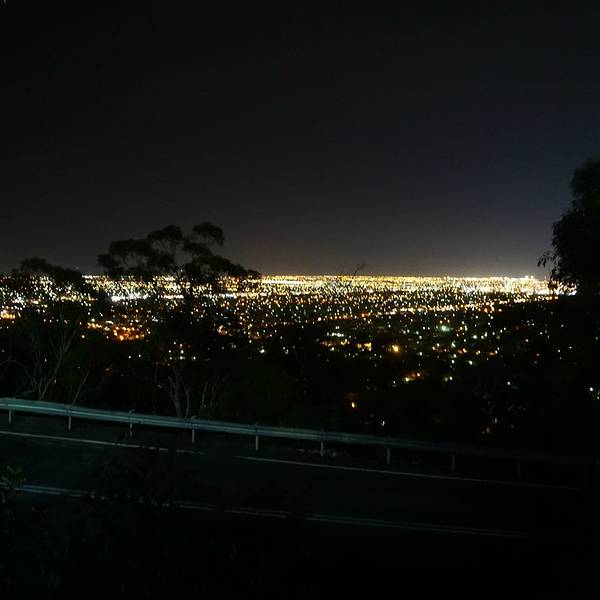 一边吃美食一边看美景,山顶餐厅的价钱实在是太贵了,所以只能在山下面吃饱饱然后再上来俯瞰阿德莱德的夜景