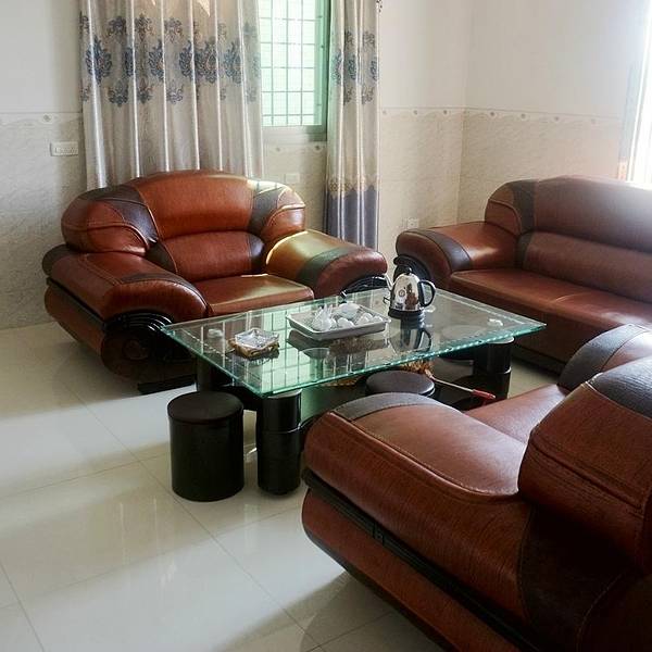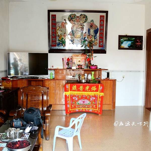 主人领着我们到二层的房间,是那种典型的农村家庭居住条件,一看就觉得很亲切,仿佛回到家中一般。每一层有三个房间,一个卫生间和一个客厅。卸下行李后,主人非常热情地邀请我们到楼下泡茶,还拿出他们刚摘的杨梅给我们解渴,还介绍说,这是他们家自种的杨梅,绝对是绿色无公害,我一尝,还真的是很甜喔。