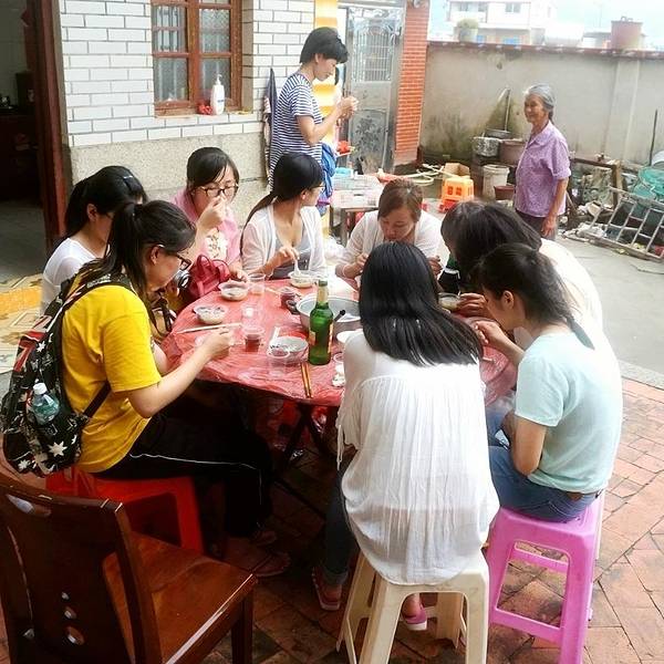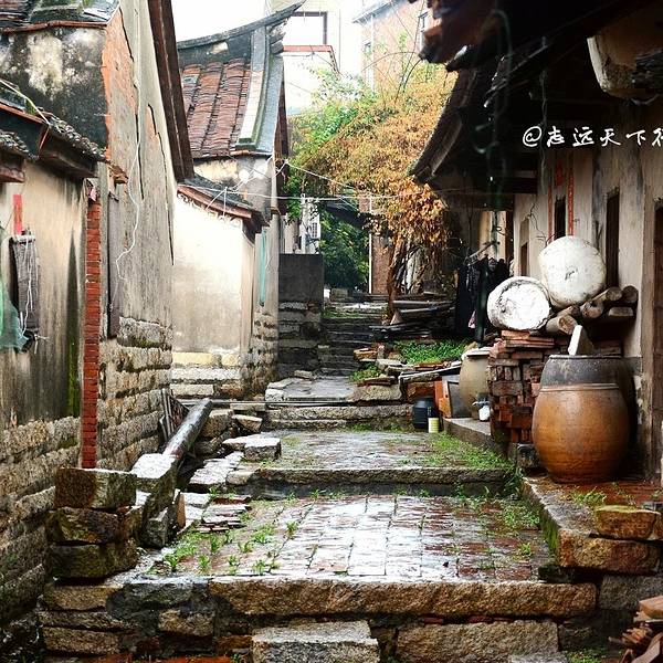快到中午时,这雨才小了点,大家三三两两结伴出来逛逛村子,看看这里的古民居。走过村庄,一路收获奇异的感觉。这里有闽南最朴素的红砖古厝,古厝的房顶上是清一色的马鞍脊、燕尾檐,丝瓜藤架在老房子前的庭院里,家畜飞在藤架上休息着,老人家在自家门前打扫着落叶,这一切,仿佛海岛上的时间计量是自成一体的,他们几百年来一直如斯生活,不知愁苦,无论魏晋。