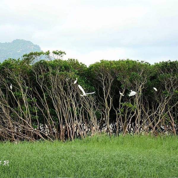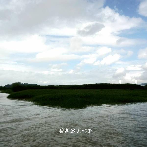 最为庞大的一个自行车旅游团队了,许多村民用他们诧异的眼光,看着我们车队,或许连他们也不敢相信,...计划中,我们第一天下午安排是骑行环岛游,先去岛西边的“草原”和红树林,然后再骑到东边的鸡冠礁。天气虽然时有阴沉,但太阳还是很晒的,大家做好全副武装,骑上自行车,开始真正的海门岛之旅了。