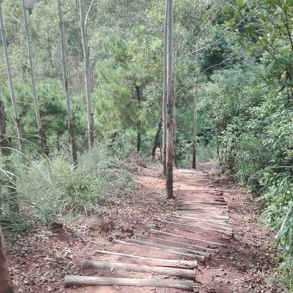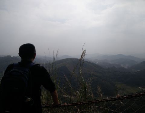 登上山顶,风景一片大好,极目远眺,远山茫茫。可惜的是,山上全种了桉树,风景大大打了折扣。