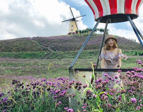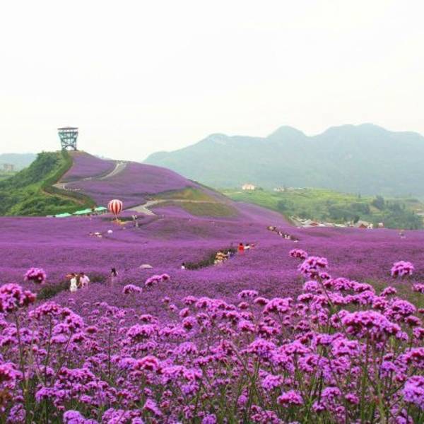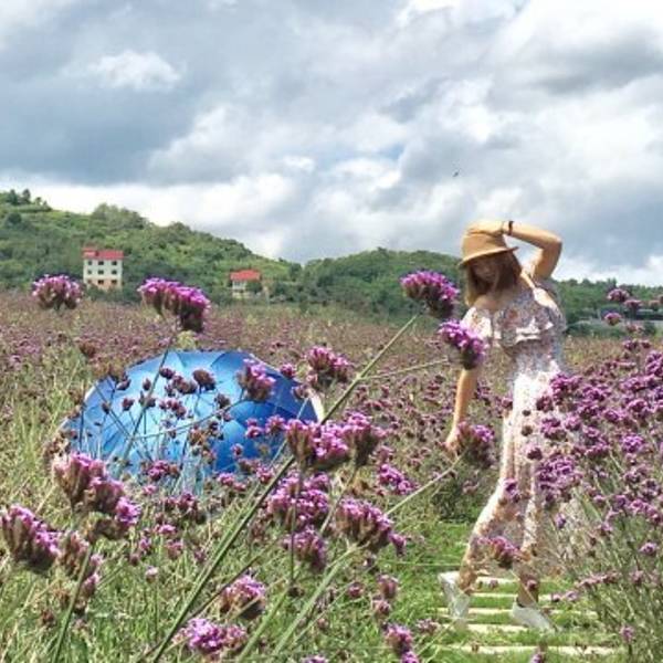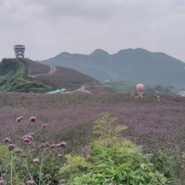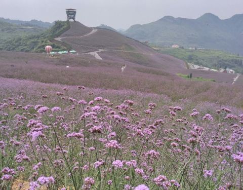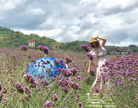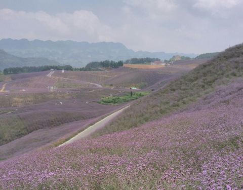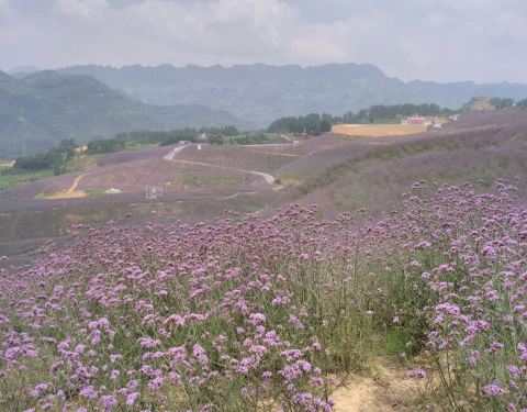 赶在花季快结束的时候去的~地方很好找贵州桐梓高速下道口不远就能看见标志~看见紫色一片但不是梦幻的薰衣草~是很普通的马鞭草~但他的普通也能带给我们震撼的画面~