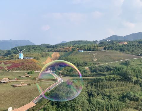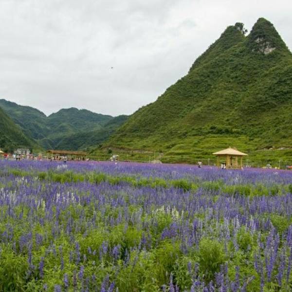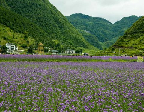 黔北花海位于桐梓县娄山关镇杉坪村,花期的时候,园区内一大片薰衣草、马鞭草、波斯菊等花朵竞相开放。放眼望去,一片紫色花的海洋呈现在你的眼前,非常壮观,小情侣来此游览、约会是不错的选择。在黔北花海游玩,建议带上相机,这里是爱拍照的游客的天堂。无论是单拍风景照,还是与花海合影,只需按下快门就可以得出一张张美美的照片。还可以在花海中穿梭,寻找隐藏着的民居,感受宁静的田园风光。花期时景区的阳光很耀眼,注意做好防晒措施。