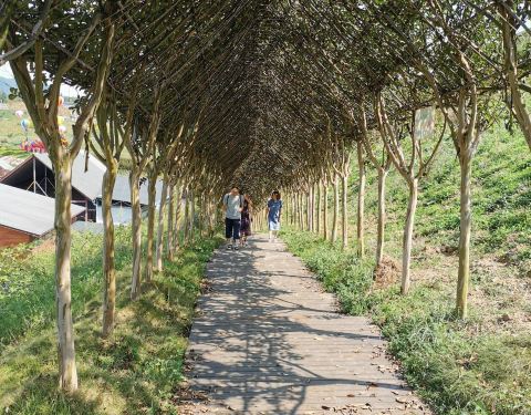 到景区还是很顺利的,有明显的路标,景区有个南大门售票处,停车场很大,门票全票60/人,优惠地区半折,我是32元,顺带2元保险,包括到另一个门的交通车费,景区内观光车20元/人,不打折,个人觉得不太必要,时间充裕的话,有个紫薇花?长廊贯穿整个景区,不晒太阳。