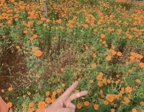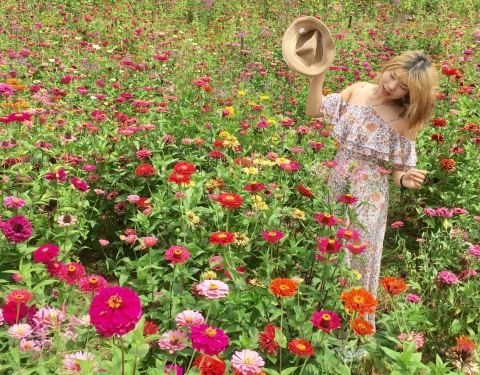 主要有四种类型的花,名字全忘了,照片有。天气变好了,拍照出来的效果还是很好看的,但是花儿里面很多杂草,可怜了顽强生长的像勿忘我的花儿。门口有小吃店,景区内也有一个,价格不贵。