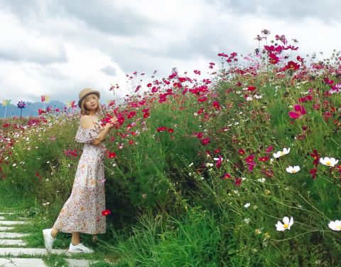 优点:交通便利,停车方便,花儿美丽,面积大,值得一去; 缺点:景区杂草丛生,品种单一,配套设施一般; 昨天下午去的,刚下过大暴雨,本来打算放弃去的,结果天晴了,又在高速路边,重庆人到贵州旅游门票过路费半折这两个月,就去了。 到景区还是很顺利的,有明显的路标,景区有个南大门售票处,停车场很大,门票全票60/人,优惠地区半折,我是32元,顺带2元保险,包括到另一个门的交通车费,景区内观光车20元/人,不打折,个人觉得不太必要,时间充裕的话,有个紫薇花?长廊贯穿整个景区,不晒太阳。 主要有四种类型的花,名字全忘了,照片有。天气变好了,拍照出来的效果还是很好看的,但是花儿里面很多杂草,可怜了顽强生长的像勿忘我的花儿。门口有小吃店,景区内也有一个,价格不贵。 兴致都在拍照上了,忘了防晒,高原的阳关还是很燃的,小仙女儿们注意咯,我就晒了印儿,不太严重。