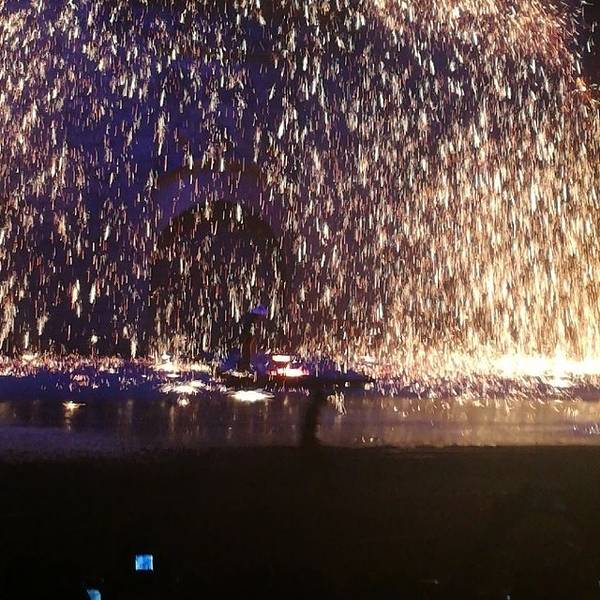 滚烫的铁水碰到坚硬冰冷的堡墙后顿时炸裂溅射开来,形成树冠状的火花,五颜六色、形态各异,“火树银花不夜天”。