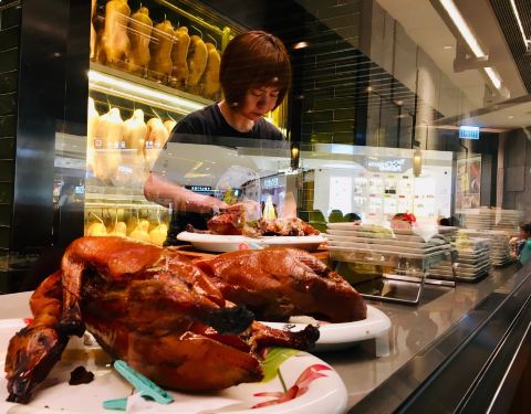 位于海港城内的一家经营烤鸭的餐厅,餐厅主要经营北京烤鸭,不过价格比起在北京吃的时候要贵,加上很多人去香港都想品尝一下香港本地的美食,所以这种偏北方口味的餐厅反倒显得比较冷清。