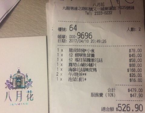 又一城的八月花就在王家沙隔壁,但环境更安静更隐蔽。到的时候不巧已是午休时间,但中午逛到这里的时候还好多人排队,所以这家就是提供正点时分的午晚餐,没有下午茶之说。粤菜的风味,美心集团旗下,出品当然有...又一城的八月花就在王家沙隔壁,但环境更安静更隐蔽。到的时候不巧已是午休时间,但中午逛到这里的时候还好多人排队,所以这家就是提供正点时分的午晚餐,没有下午茶之说。粤菜的风味,美心集团旗下,出品当然有保证。既有粤式的小炒、也有BB脆皮猪,还有迷你煲仔饭,两个人分食刚刚好