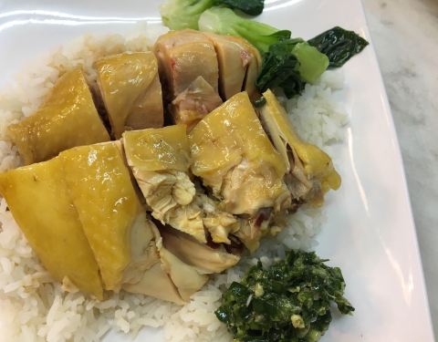 已经时间有点晚了,过了用餐的最高峰,所以餐厅里面还有很多的空位,就显得餐厅尤其的宽敞,不像普通的茶餐厅感觉没有那么拥挤,服务员的态度也很好,终于有耐心听我们讲普通话慢慢的说。帮主打的是稍微像是金牌四宝饭,包括了红肠、生肠、猪舌、猪肚,还有就是港茶餐厅中最常见的叉烧、烧肉、烧鸭、贵妃鸡、豉油鸡等等。点了一份贵妃鸡,还配了一些蔬菜,味道嘛正常,不能说惊艳,反正就是普通。