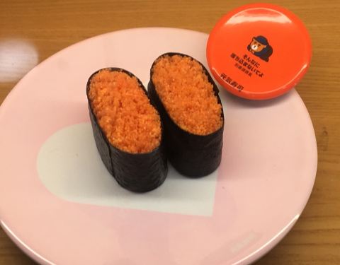 元气寿司,海胆、三文鱼子(很一般)、炸软壳蟹手卷好评,中拖罗很一般还行对得起价格,然后是像三文鱼鱼子的忘了叫什么,起司鳗鱼卷也不错,鱿鱼好评。一共是140块钱,中间吧,上菜是巨快的,我也很快就吃完,就是寿司的总类太少了,十分期待日本的回转寿司店来这里开店。