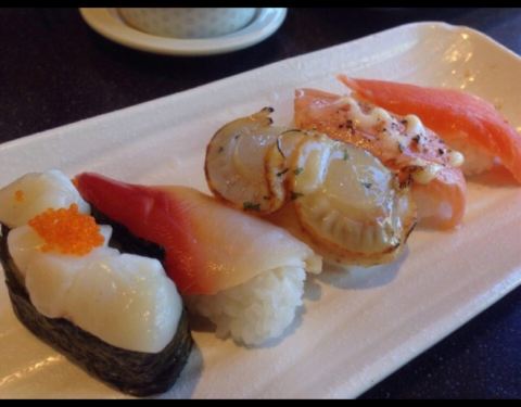 來這吃下午茶,有5個下午茶餐選擇,算是滿多選擇的,性價比滿高。 這次選了壽司的下午茶套餐,有三文魚,火炙三文魚,帶子,北寄貝,元貝。 還可以選一個小吃和熱食。