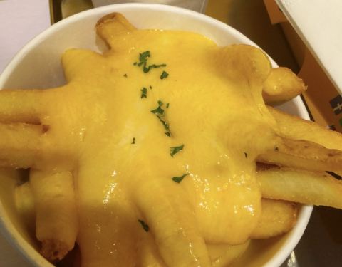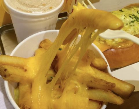 芝士真的超级拉丝,蛋炒得很嫩,一起吃口感蛮丰富的,然后薯条一定要趁热吃