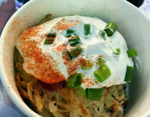 真的没有他们说的那么好吃,味道并不怎么样,点了一个香煎烟肉洋葱薯饼,黑胡椒放的很重,土豆丝放了醋?反正有点酸,这个口味配价格觉得有点贵了,但是老板人很好。