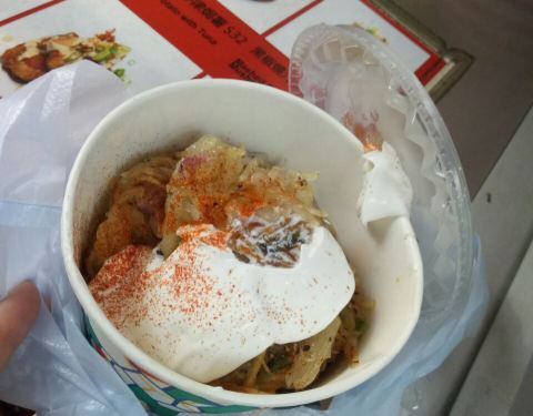店面很小,地点难找,老板是帅哥和美女,颜值超高,专业做西式土豆和地瓜,一路吃下来,实在吃不下了,吃上几口满口洋葱味,太饱了,影响了对美食的品鉴,把地瓜和土豆做的有卖相。