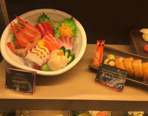 话说,这是一家荞麦面的专门店,但是荞麦面在这里,反而像是配角。更多的主角像是生鱼片、和牛、寿司等。和牛还是号称的是日本最高级别的和牛,是京都和牛,但日本的最好的和牛不是在神户嘛?所以有点搞不太懂,但说实在话价格不算便宜,一份荞麦面就要188蚊,可配天妇罗或是炸猪排。