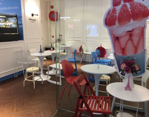 好喜欢这家Cafe店,但其实主打的是冰淇淋。主要是喜欢它的风格,白色的小圆桌配上或红或蓝的木质椅子,每张桌上都放着或粉或蓝的小小的埃菲尔铁塔,营造出一个小清新的Paris