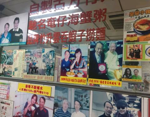 因为蔡澜先生的推荐和众多偶像明星的光顾,让这家街巷里的小馆子声名鹊起,连司机大哥都知道这里,顺利地把我们送到了水坑尾街的老店。店面不大,里面装修也简陋,满墙都是老板和明星的合影,!!!