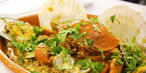 海鲜饭值得推荐。不像国外的海鲜饭那样烦是夹生的。很鲜,很入味。主要食材好,海鲜很多,很新鲜。刚烤好的免费面包很向,夹着黄油,橄榄,吃的很满足。