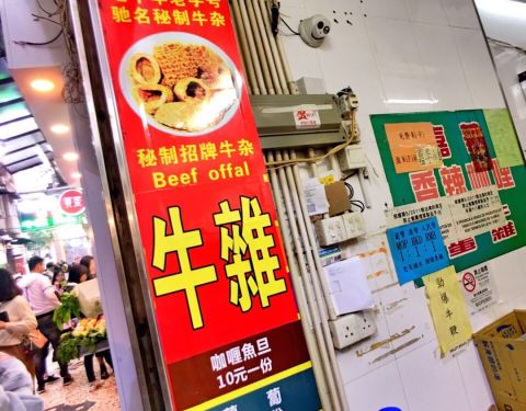 主营牛杂及小吃的街边小摊,适合边走边吃。