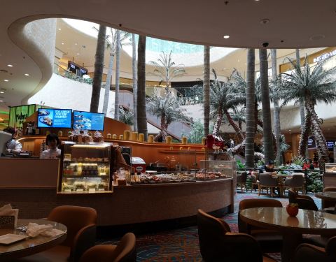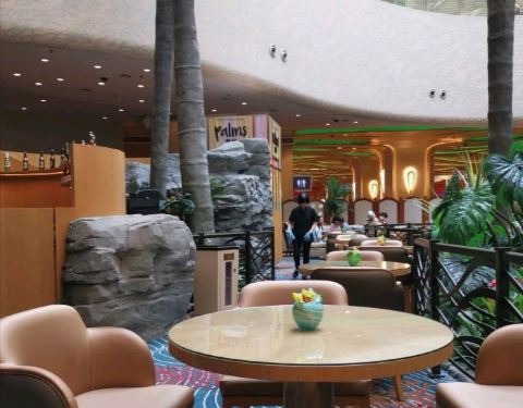 喜柏palms在金沙城中心的中央,刚好在商场跟酒店区域的中间,地理位置很好,全开放的餐厅环境,是隶属于喜来登的bar,这边比较吵闹,如果是谈正式事情的,不建议在这里,但是如果想感受繁华的话,这里是不错的选择。 我们在里面作战完出来坐的,下午茶餐比较划算,一SET蛋糕塔,就已经很饱了,咖啡也可以,旁边绿树成荫,歇歇脚,看看杂志,又是一个美好的时光。