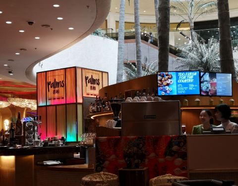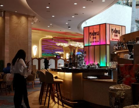 喜柏palms在金沙城中心的中央,刚好在商场跟酒店区域的中间,地理位置很好,全开放的餐厅环境,是隶属于喜来登的bar,这边比较吵闹,如果是谈正式事情的,不建议在这里,但是如果想感受繁华的话,这里是不错的选...