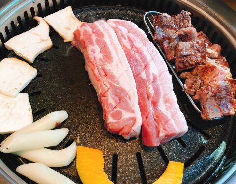- 分量足,肉很新鲜很厚,腌制的肉特别好吃。推荐烤五花肉,牛腩,牛骨汤。必须五星