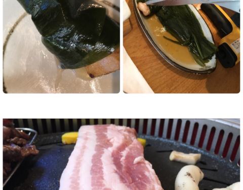 我们点了一份牛肉,两份五花肉,还有海鲜煎饼,不得不说真的很贴心,帮我们烤肉,而且味道真的赞!肉好吃不过我们都喜欢烤糊一点的 海鲜饼赞~大爱 每次来必点!