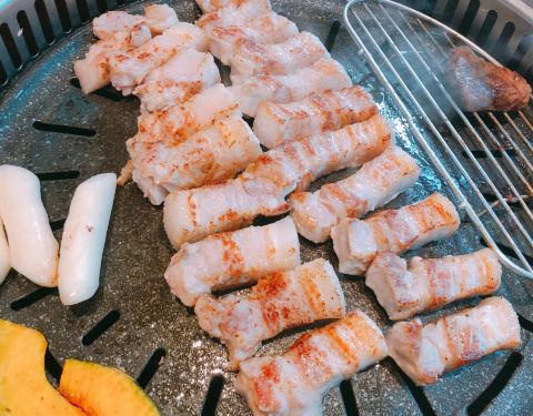 - 还有个海鲜葱饼也很好吃,烤肉就更不用说了,很好吃,在明洞逛完,深夜去这里吃顿烤肉,小酌一杯,就完美了