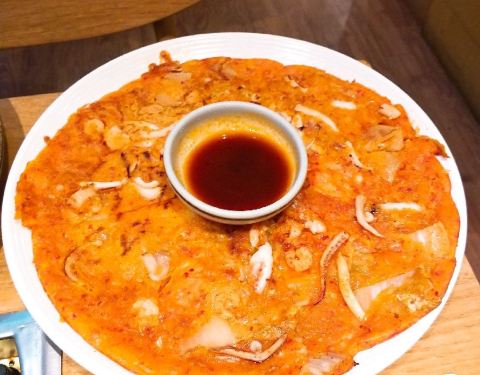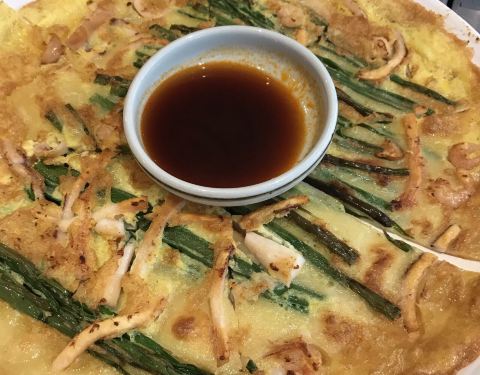 还有个海鲜葱饼也很好吃,烤肉就更不用说了,很好吃,在明洞逛完,深夜去这里吃顿烤肉,小酌一杯,就完美了