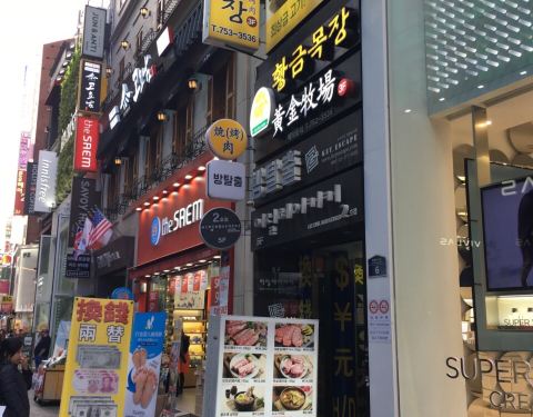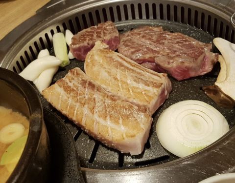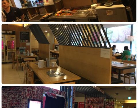 就在明洞的主干道上,店面不大,位置也陆续坐满了人,烤肉种类还算不多,也就是韩国烤肉,石锅饭,就是性价比比较高,服务员也一直帮着你烤,肉烤着缩水得厉害,石锅拌饭味道很好,烤肉就是喜欢包菜吃,肉肥而不...